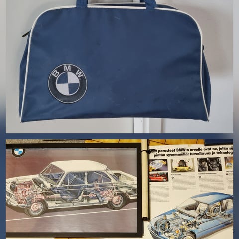 BMW-laukku todennäköisesti 1970-luvulta. Koko: 40 x 25 cm