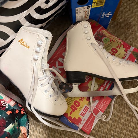 Aliisa kaunoluistimet koko 32. Vain pari kertaa käytetty. Mukaan teräsuojukset.