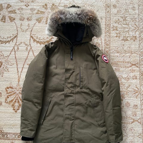 Canada Goose Chateau Parka. Takki on koossa M ja musta. Takissa on tyypillistä haalistumaa, mutta ei reikiä. Hihan resori on käytetty ompelijalla korjauksessa, siinä oli ihan pieni purkauma aijemmin, ei mitään käytössä näkyvää tai käyttöä haittaavaa.