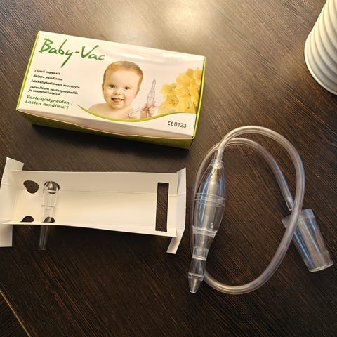 Myydään Baby Vac nenäimuri. Käytetty mutta puhdistettu aina käytön jälkeen. Nyt ollut vuosia käyttämättä. Kaikki osat tallessa ja ehjät. Erittäin tehokas ja hyvä silloin kun vauvalla on nuha! Nouto tai postitus, kulut ostajalle!