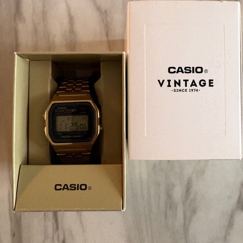 Casio miesten rannekello, jossa on musta kellotaulu ja metallinen ranneke.Sopii arkikäyttöön ja erilaisiin tilaisuuksiin. Kello on myös vedenkestävä. Todella vähän käytetty, vain lasissa todella pieniä naarmuja saattaa nähdä.