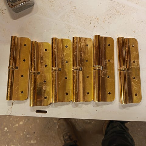 Kuvassa näkyvät 13 kpl solifer messinki saranat, uusia+ muutama käytetty. Kahta kokoa
