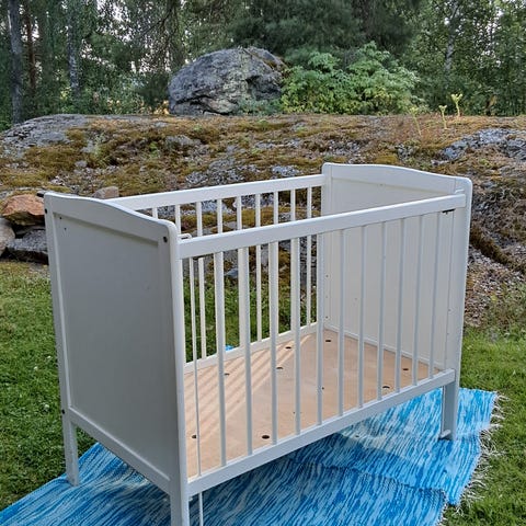 Säädettävä sängyn korkeus, lukittavat pyörät ja laidan saa halutessaan pois. Siistin patjan saa halutessaan mukaan.Ulkomitat: korkeus 75 cm, pituus 90 cm, syvyys 45 cm. Eläintalous.