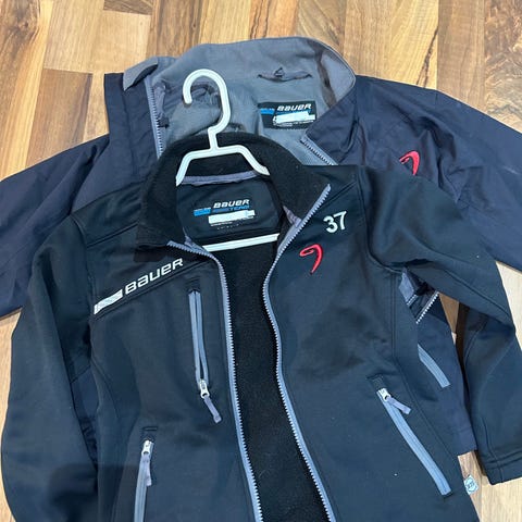 Seuraavalle Jypin logoa rintaan :-) JYP / Bauer tuulipuku ja fleece / takit XXS ja housut XS. Saa tulla sovittamaan, koko paketti 20€. Takit hyvät ja tietty housuissa näkyy treenaminen. Kuvissa mittanauha Bauerin koot niin mystisiä :-)
