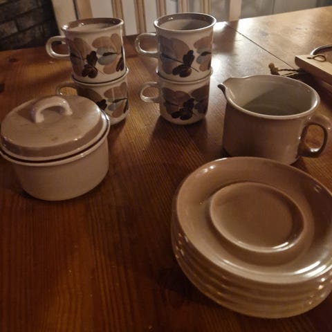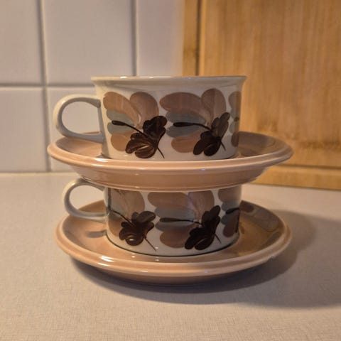 Arabia Koralli teekuppi & tassi yhteensä 80 €.