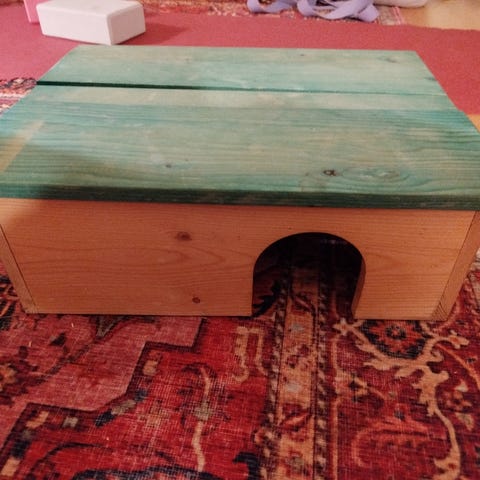 Puinen, tilava pesämökki esim. marsuille/kanille. Todella hyväkuntoinen. Oli meillä häkissä vain n. kuukauden, eivätkä marsut juurikaan oleilleet siellä.