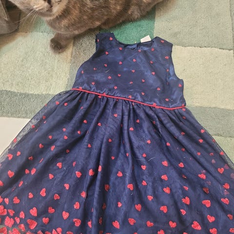 Kotimainen kukkakuosinen Napikas-merkkinen trikoomekko. Koko 86, kellomainen helma.
