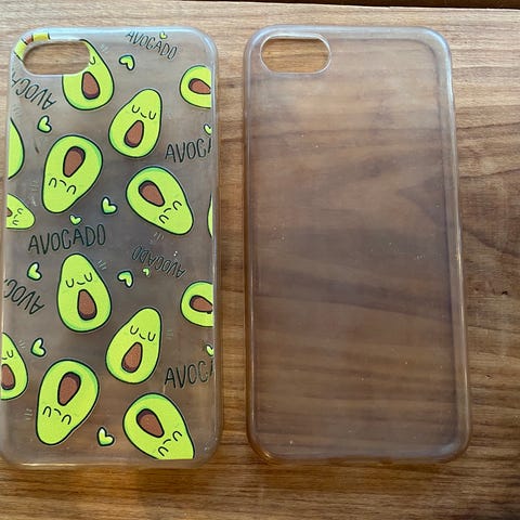 IDEAL OF SWEDEN kuoret, joissa ananaskuvio ja läpinäkyvät kuoret iphone 7/8/SE -puhelimelle. Kuoret ovat ehjät, mutta jonkin verran käytön jälkiä näkyvissä.