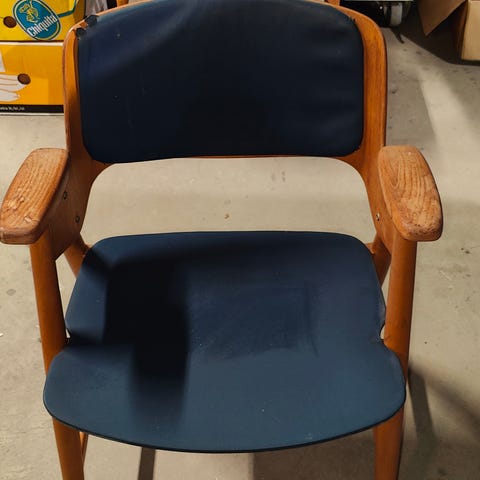 Valmistettu koivusta. Suunnitellut 1952 Olof Ottelin ja valmistettu Keravan Puusepäntehtaalla 1950- ja 1960 luvulla. Tuolit ovat puuosiltaan täysin ehjät mutta niissä on toki käytön jälkiä. Päälliset ovat kahdessa tuolissa kärsineet reunasta ja yhdestä puuttuu selkänojan päällinen kokonaan. Tuoleja löytyy 2 + 1kpl, Parempien hinta 45 €/kpl, kolmas 25 €