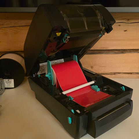 Kuvan mukainen tulostin. Ehjä ja näppärä nimi tarroihin.