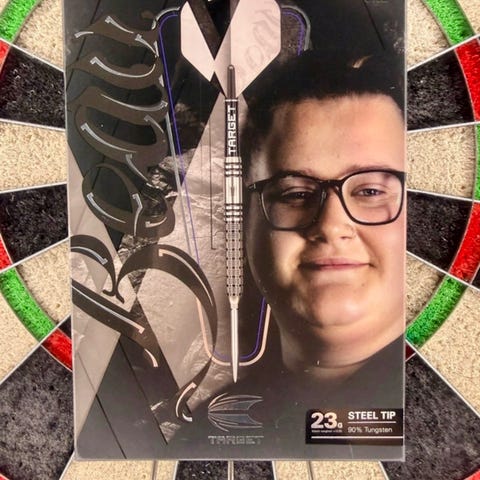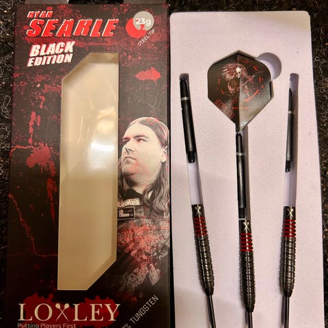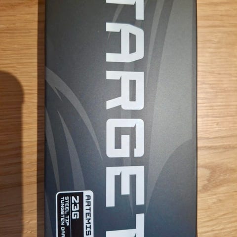 Ylimääräiseksi jäänyt setti. Tehty vain kevyttä testausta eli kunto ei juuri uutta häpeä. Muuten mainiot tikat mut itelle olis saanu olla enemmän grippiä. Vaihdettu 28 mm Perfect Nine Alpha- kärjet. Alkuperäiset käyttämättömät sulat ja varret mukaan. Huom! Ei Swiss Point- malli. Näitä alkaa olla jo hankala löytää.