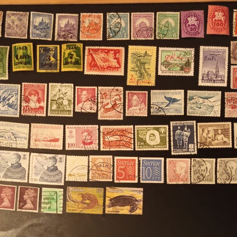 Pääasiassa euroopn maiden postimerkkejä edullisesti yhteensä 130 erilaista, joista 14 on postituoretta postimerkkiä.