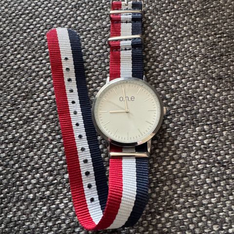 O.N.E. naisten rannekello, jossa musta teräsranneke (johon jatko-osat), valkoinen kellotaulu. Kellossa on kvartsikoneisto ja koristeellinen kivireunus kellotaulun ympärillä. Takakannessa merkintä A25385 ja vesitiiveys 50 m. Vaatii patterin vaihdon