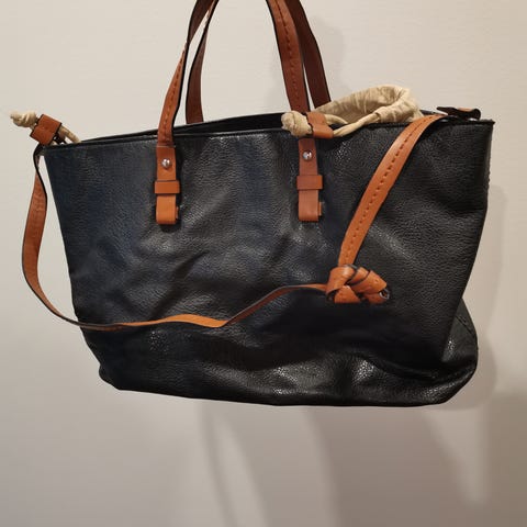 Sinapinkeltainen käsilaukku. Tekonahkaa. Kulunut, kuten kuvista näkyy, mutta ihan edelleen ihan käyttökelpoinen. Lenkit, joissa hihna on kiinni, näyttävät siltä että niitä saattaa joutua vahvistamaan/korjaamaan varsinkin mikäli meinaa kantaa laukussa jotain painavampaa.