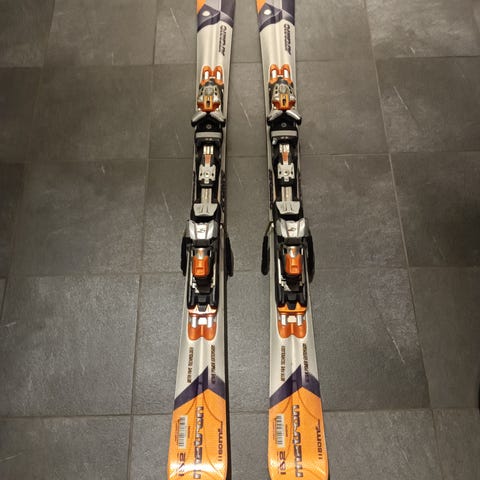 Hyväkuntoiset sukset, viime kaudella pohjat voideltu.