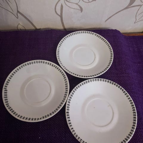 Kupit ja lautaset hyväkuntoiset, ei krakeloitumaa eikä halkeamia.