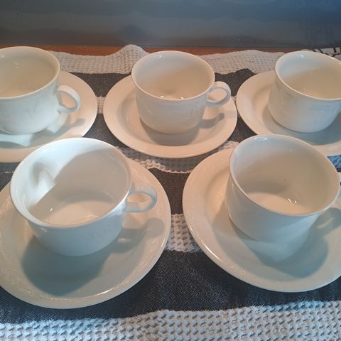Arabia Arctica kahviastiasto 14 kpl kahvikuppeja lautasineen sekä sokerikko ja kermakko. Ylimääräisiä aluslautasia 12 kappaletta.