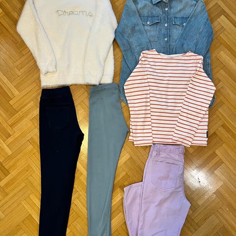 Vaatepaketti tytölle koko 140cm. Kolmet housut, kolme paitaa.