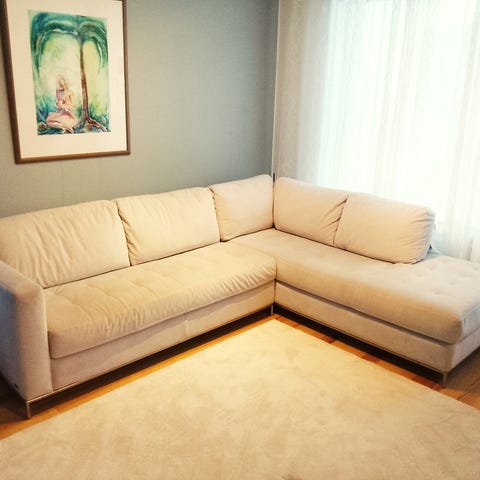 Myydään laadukas Natuzzi-merkkinen kulmasohva. Sohva on erittäin mukava istua ja loikoilla, sillä siinä on untuvatäytteiset tyynyt, jotka tekevät istuinmukavuudesta pehmeän mutta ryhdikkään.