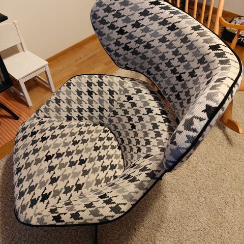 Tyylikäs lepotuoli. Tuoli pyörii kevyesti ja sen tukeva metallijalka takaa vakaan rakenteen. Täydellinen lisäys rentoutumiseen ja sisustukseen.