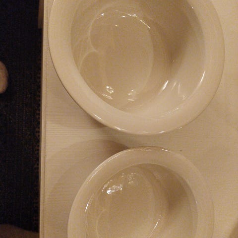 Kastikekaadin sisähalkaisijat 12cm, kulho 14 cm ja kannallinen kulho 17cm. Vähällä käytöllä olleet. Myydään settinä 20€