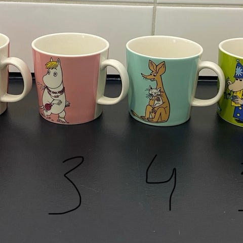 Myydään Arabian Muumimukeja. Mukit ovat vähän käytettyjä ja tarrattomia.
