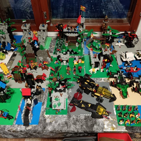 sisältää erilaisia rakennus alustoja, merirosvo aluksen, pari poliisivenettä, eri linnoitusten seiniä, ikkunoita, ovia, mopoja, autoja yms.