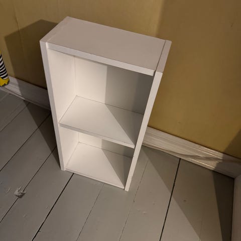 Yläkaapissa ja alakaapissa välihylly, ehjä