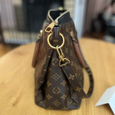 Louis Vuitton Pallas Chain. Upea ja samalla käytännöllinen laukku. Voidaan kantaa olkapäällä tai crossbodyna. Kolme osastoa ja kaksi taskua sisällä. Kätevänkokoinen sekä arkikäyttöön että erityistilaisuuksiin. Laukku on erittäin hyvässä kunnossa ja siinä on vain vähäisiä käytönjälkiä.