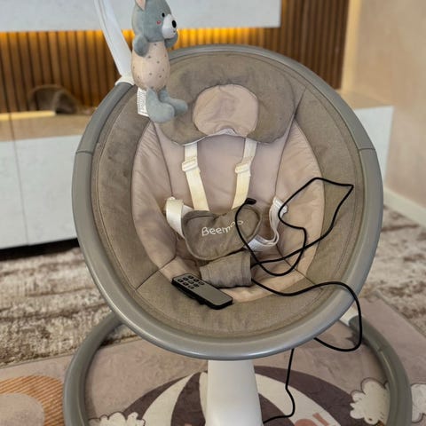 Beige Beemoon sitteri, muuten hyvässä kunnossa, mutta kaaressa ratkeama jonka helposti saa korjattua jos vaan viitsii😅