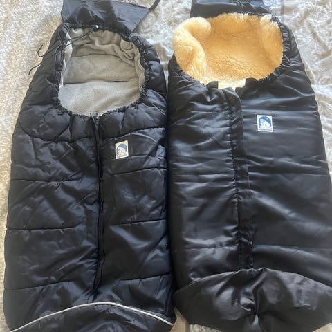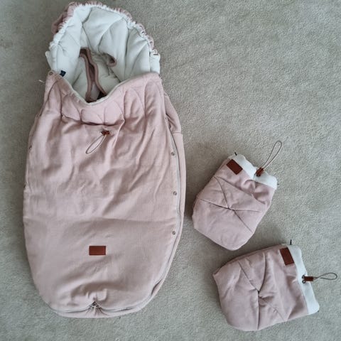 Myynnissä 2kpl Najellin lämpöpusseja / vaunupusseja / footmuffeja beigessä sävyssä.