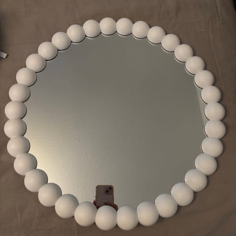 Rusta pyöreä peili, jossa musta kehys. Peili soveltuu seinälle ripustettavaksi. Peilin halkaisia 65cm. Vain nouto.