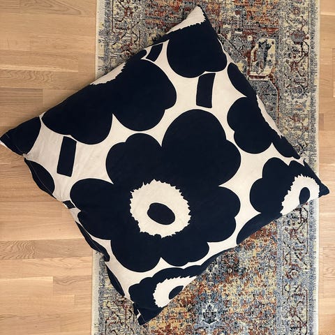 Marimekon pieni unikko kankaan ylijäämästä ommeltu pieni lämmitettävä riisityyny, voi myös kylmentää. N.21x10cm kokoinen joten sopii käsiä lämmittämään tai vaikka otsaa viilentämään☺️🪷