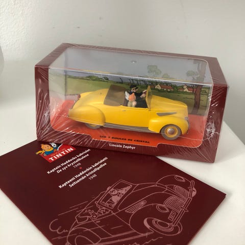 Sisältää myös kuvassa olevan punaisen esitteen auton historiasta. Ja tietoa autoon liittyvästä sarjakuva-albumista.