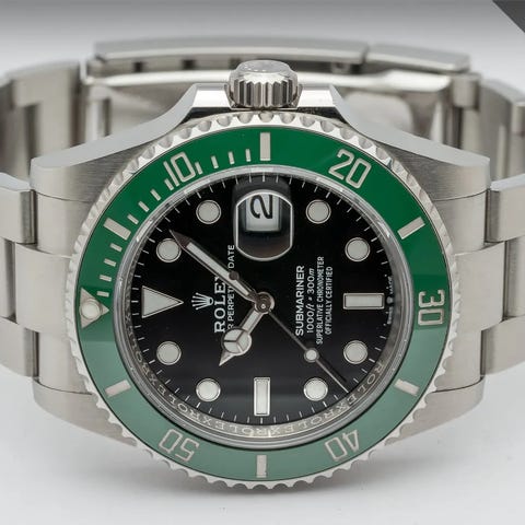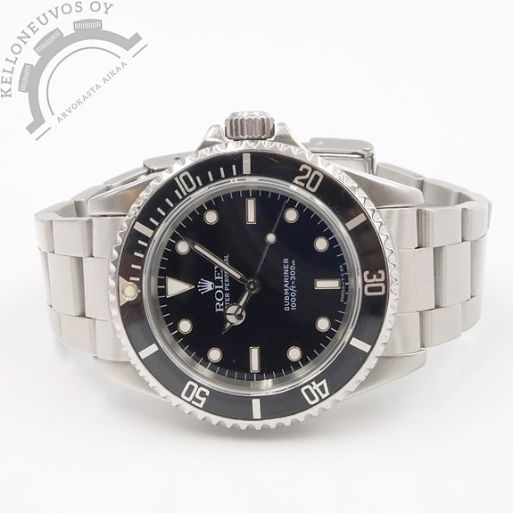 Tarjolle siistissä kunnossa oleva klassikko Submariner. Selkeälukuisella mustalla taululla oleva päivyrillinen versio jossa loistavan lumen omaavat osoittimet ja indeksit. Teräksinen kuori jossa musta keraaminen kehä. Kokonaisuuden kruunaa laadukas teräsranneke jossa käyttömukavuutta lisäävä säädettävä claspi. Safiirilasi suojaa kellon etupuolta kun taas teräksisen takakannen alla tikkaa Rolex 3235 -automaattikoneisto jossa 70h käyntivara. Full set, kellon takuukortti on päivätty 1/2023.