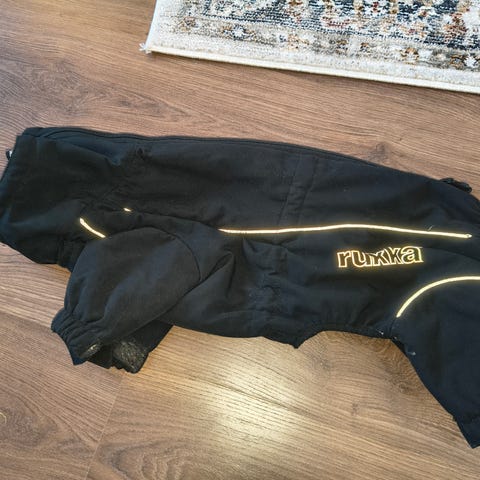 Rukka talvihaalari karvavuorella. Etujaloissa lisäpehmusteet lisätty sisäpuolelle. Koko 40cm