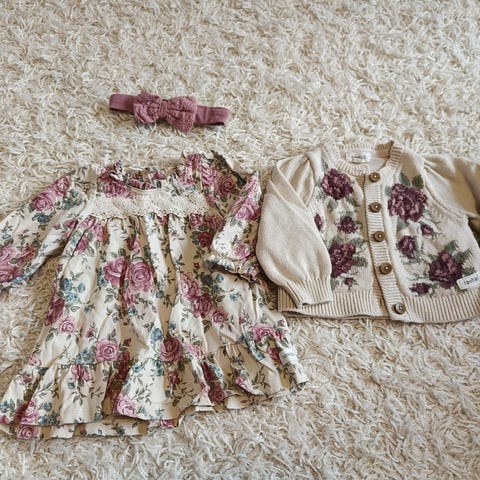 Mekko ihana lämpölurttana vauvan päällä. Housutkin pehmeät ja helppo pukea.