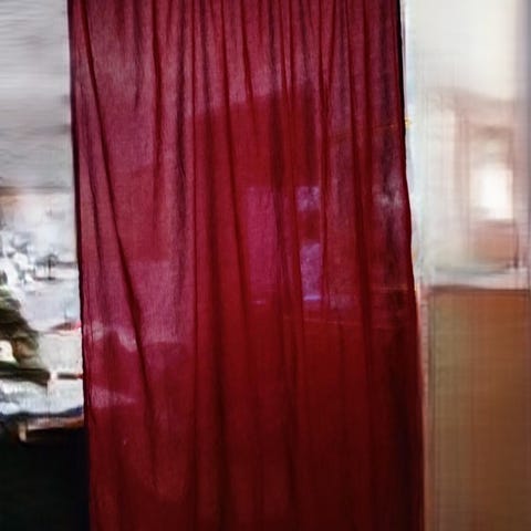 Myydään punaisia ja oransseja verhoja.