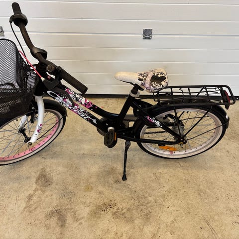 Crescent mustavalkoinen lasten polkupyörä, koko 20”. Käytön jälkeä löytyy jonkin verran, vaihteen suoja puuttuu.
