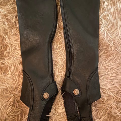 Säärystimissä on vetoketjut ja säädettävät hihnat. Joustava reuna. Sopii käytettäväksi ratsastuksessa tai muuhun ulkoiluun koko M.
