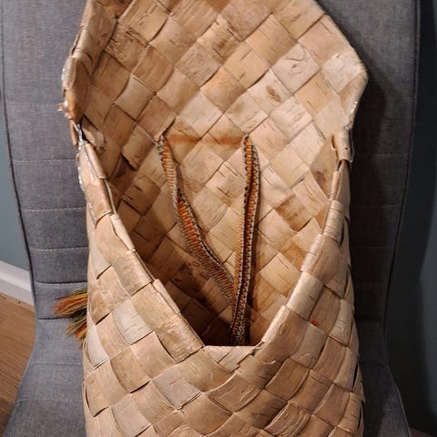 Koristeena olleet tuohivirsut ja kontti jonka mitat k 35 cm L 19cm Nouto hinta yht 10€