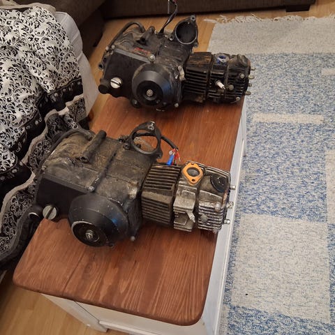 Kiinanmönkijästä irroitettu 86cc sähköstartillinen monkey tyyppinen automaatti moottori. Esim. Varaosiksi tai vaikkapa yläkerta mankin koneeseen. Kampiakseli pyörii ja puristukset löytyy. Kiinni oleva 16pz kaasari sekä imukaula mukaan.