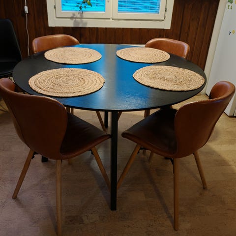 Myydään 6kpl mustia nahkaisia ruokapöydän tuoleja. Kaikki kerralla. 50€ kaikki. Seppälä.