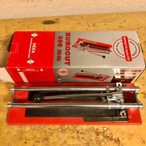 Hyvä laattaleikkuri. Max laatta 60cm. Sivu ohjuri mitta-asteikolla.