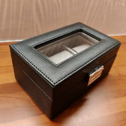 Käytetty mutta hyväkuntoinen – yhdessä sivussa pieni kosmeettinen virhe, näkyy viimeisessä kuvassa. Muuten erittäin siisti ja näyttävä kellolaatikko.