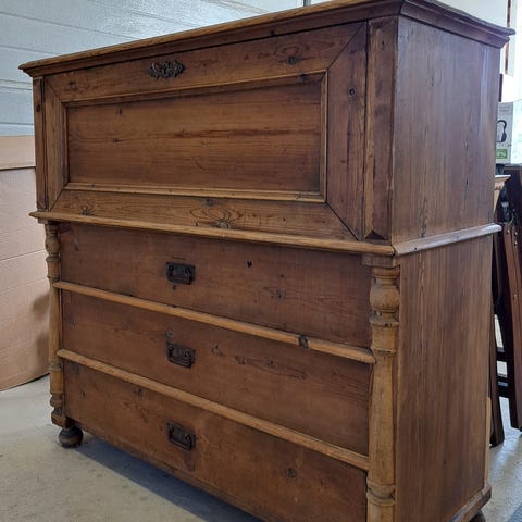 Antiikkinen ootrattu puinen klaffipiironki lukittavilla kaapeilla. Hieno n 1900 luvun puusepän tekemä sisustukseen ja tavaroiden säilytykseen. Korkeus 123, leveys 120, syvyys 44. Sisältää peilin.