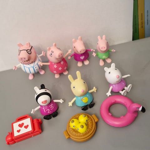 Puiset Pipsa Possu -hahmot. Avattu, mutta ei ole olleet varsinaisesti leikeissä mukana.