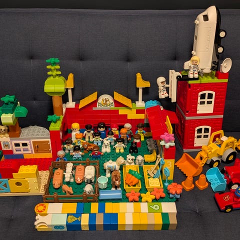 Valtava määrä legoja. Osasta ohjekuvat malliksi. Myös maatilasta saa ohjekuvia, muttei tänne saa laitettua enempää kuvia.