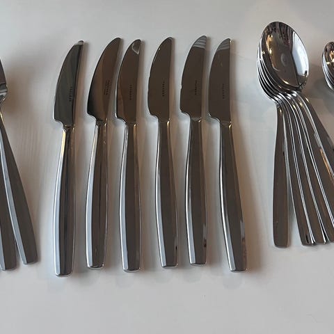 Myynnissä Hackman Carelia aterimet.Ovat ruostumatonta terästä valmistettuja ruokailuvälineitä, veitsiä 2 kpl., haarukoita 2 kpl. ja ruokalusikoita 3 kpl.
