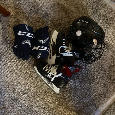 Myydään hyväkuntoiset CCM JetSpeed 250 luistimet, CCM Tacks 210 jääkiekkokypärä kasvosuojalla ja CCM FT 475 hanskat.